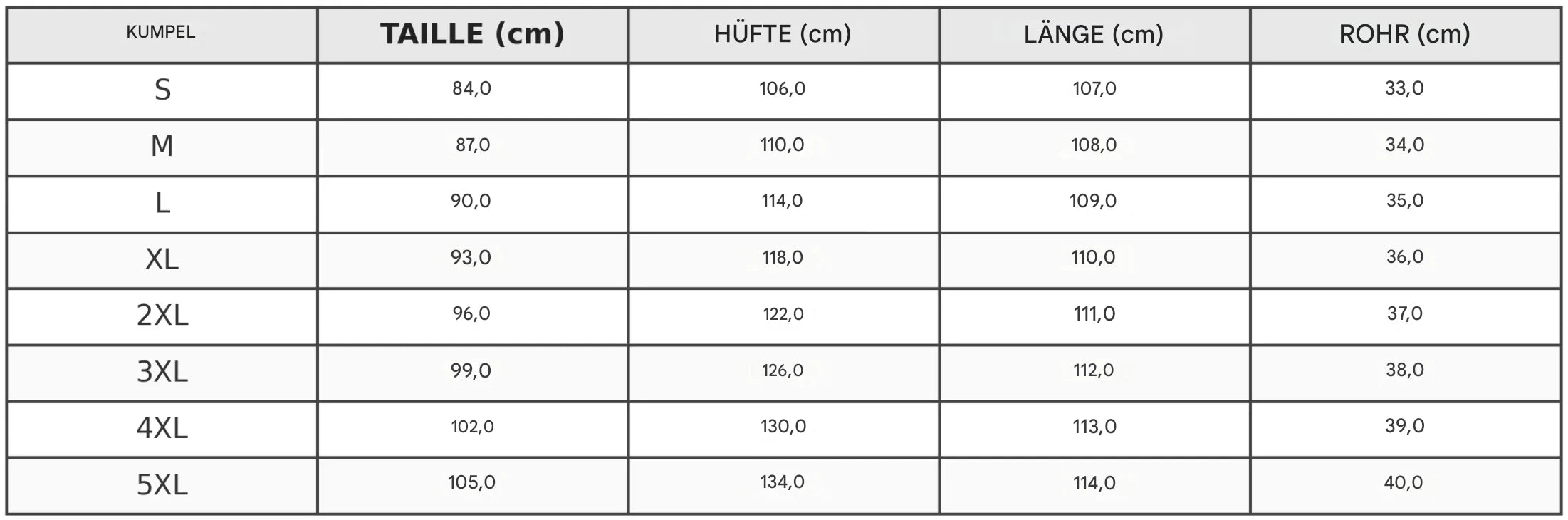 ACHTUNG: Wenn du zwischen zwei Größen liegst, empfehlen wir die größere Größe zu wählen.